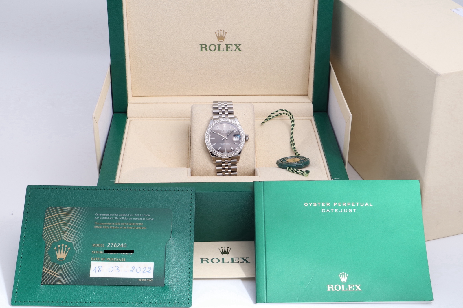 Rolex Datejust 278240 Rhodium Dial 31 mm Diamond Bezel Steel 2022 Women’s Watch